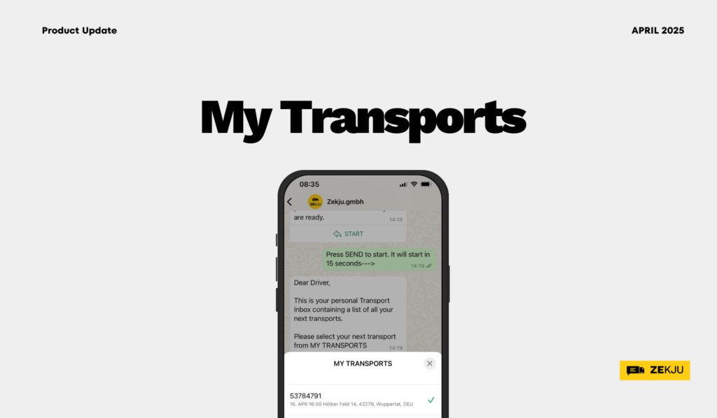 Mit dieser Funktion kann sich ein Fahrer direkt im Messenger eine Liste „seiner“ Transporte anzeigen lassen. Aus dieser Liste kann er dann auswählen, welchen Transport er als nächstes durchführen wird. Diese Neuerung wird zum Standard in allen ZeKju–Transporten.